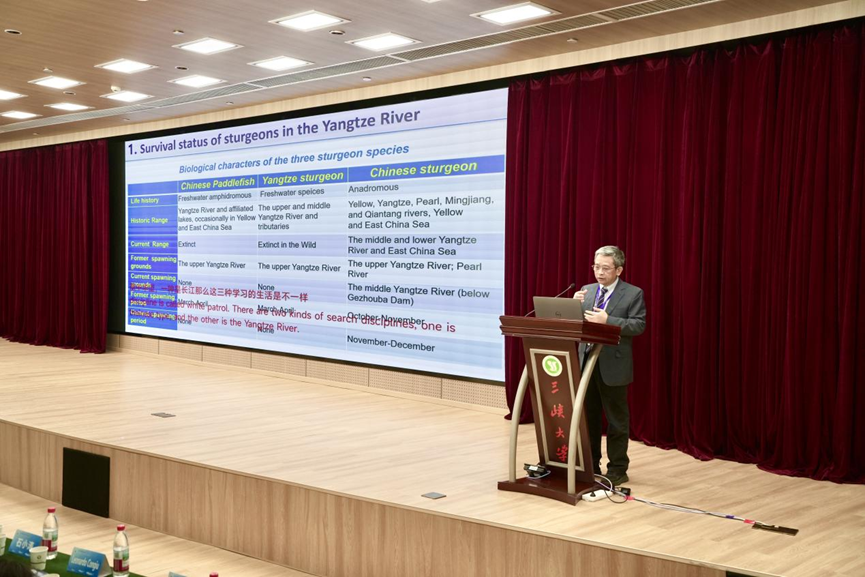三峽集團國家工程中心長江生物多樣性研究中心(以下簡稱“生物多樣性中心”)首席專家、武漢大學教授常劍波作大會主旨發言。他以長江鱘魚生態恢復為主題,深入分析了三種長江鱘魚的生存現狀與生態位特征,提出“生態位重建是鱘魚保護核心”的觀點。他還系統闡述了三峽集團聚焦生態位重建實踐,圍繞物種人工保種、關鍵棲息地修復等方面開展的一系列開創性工作和取得顯著成效,引發了與會專家的高度關注和熱烈反響。