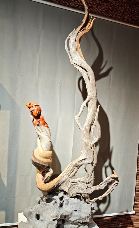 同樣“駐扎”牛扎坪花木城的,還有從事木雕工藝的董國周,“這個作品我個人很喜歡,有客人出價4500元,我沒舍得賣。做木雕是慢工出細活,產量雖低,但不愁賣?!彼钢粋€木雕說道。