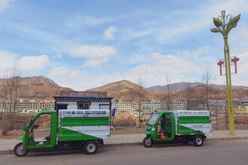 轉(zhuǎn)機(jī)來(lái)自2022年。三峽集團(tuán)開(kāi)始對(duì)口支援丁青,將生活垃圾處理能力提升列為重點(diǎn)援建項(xiàng)目。一批現(xiàn)代化環(huán)衛(wèi)車輛開(kāi)進(jìn)了高原縣城——壓縮式清運(yùn)車、洗掃車、灑水車等共20輛,分配給縣城和13個(gè)鄉(xiāng)鎮(zhèn)。