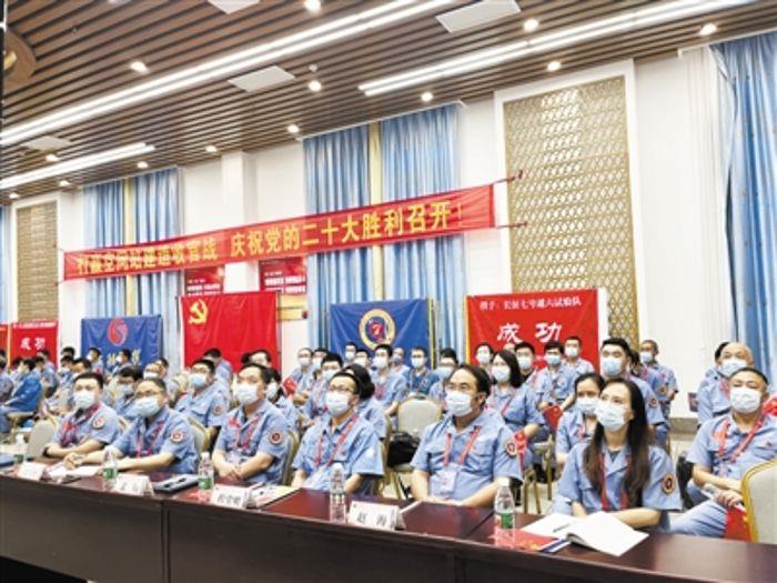 上午10時(shí),航天科技集團(tuán)一院長(zhǎng)征五號(hào)B、長(zhǎng)征七號(hào)、長(zhǎng)征二號(hào)F三支火箭發(fā)射隊(duì)全體隊(duì)員各自集結(jié),集體收看黨的二十大開(kāi)幕盛況。