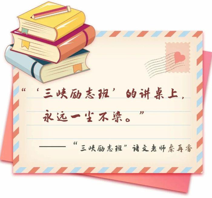 說起“三峽勵志班”有何特別之處,秦再香老師很有發言權。因前任語文老師意外受傷,秦老師在初三時接任了語文教學工作。“還記得第一次走進‘三峽勵志班’,講桌上一塵不染,教學用具擺放得整整齊齊,這些細節讓我印象深刻。”秦老師回憶道。