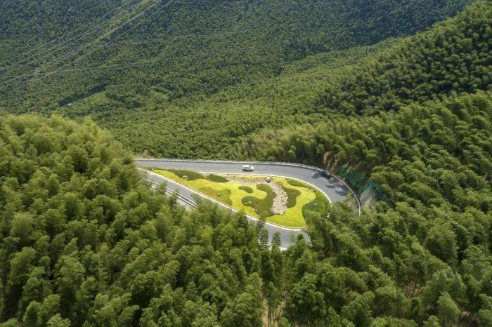 乘車穿行在上下水庫之間,我們可以看到明線道路每個回頭彎都經過了精心設計,樹木、草地、景觀石等元素巧妙搭配,每一處都是一個個性十足的小公園,滿眼綠色觸手可及;每一條隧道盡頭都是不一樣的景致,奇山怪石一一呈現。