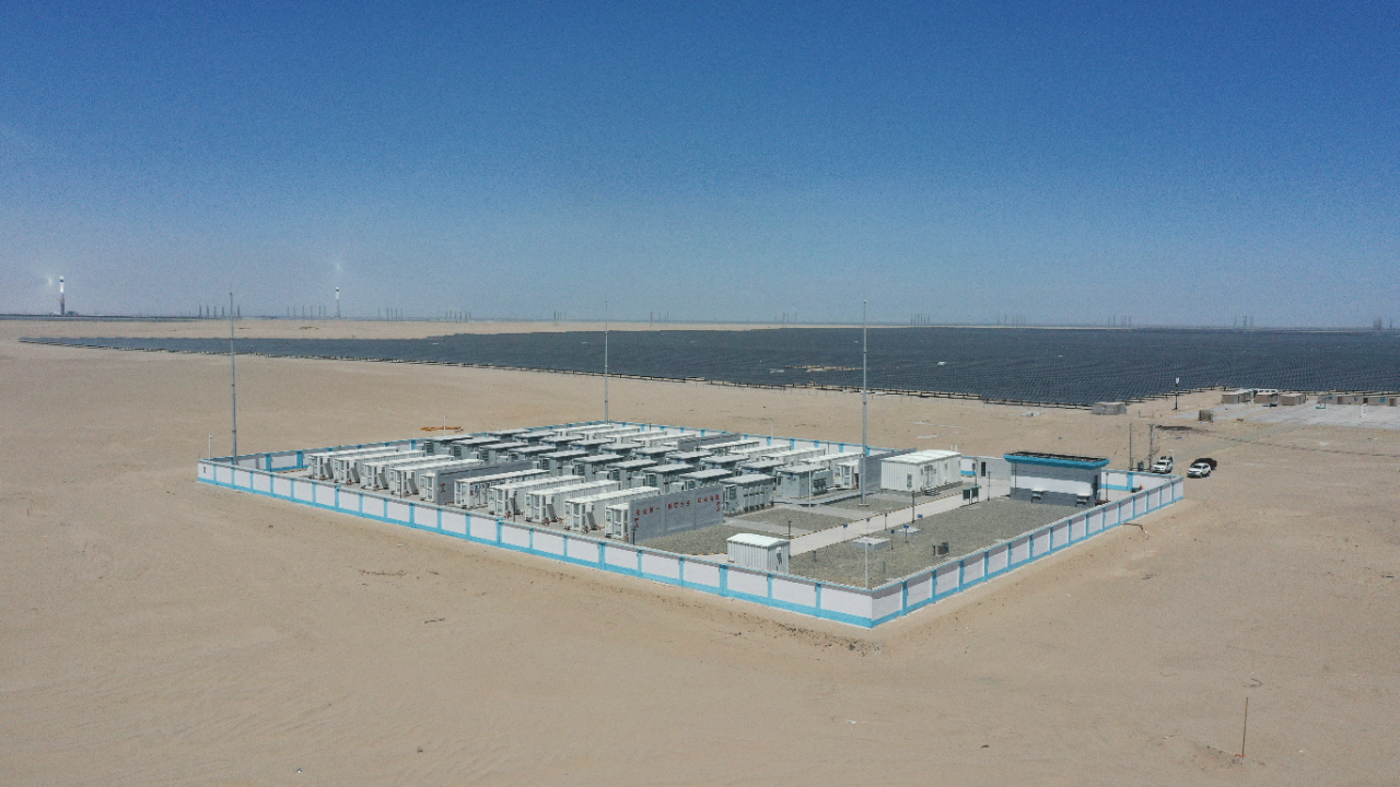 ▲戈壁上的三峽海西基地100萬(wàn)千瓦光伏配套儲(chǔ)能電站