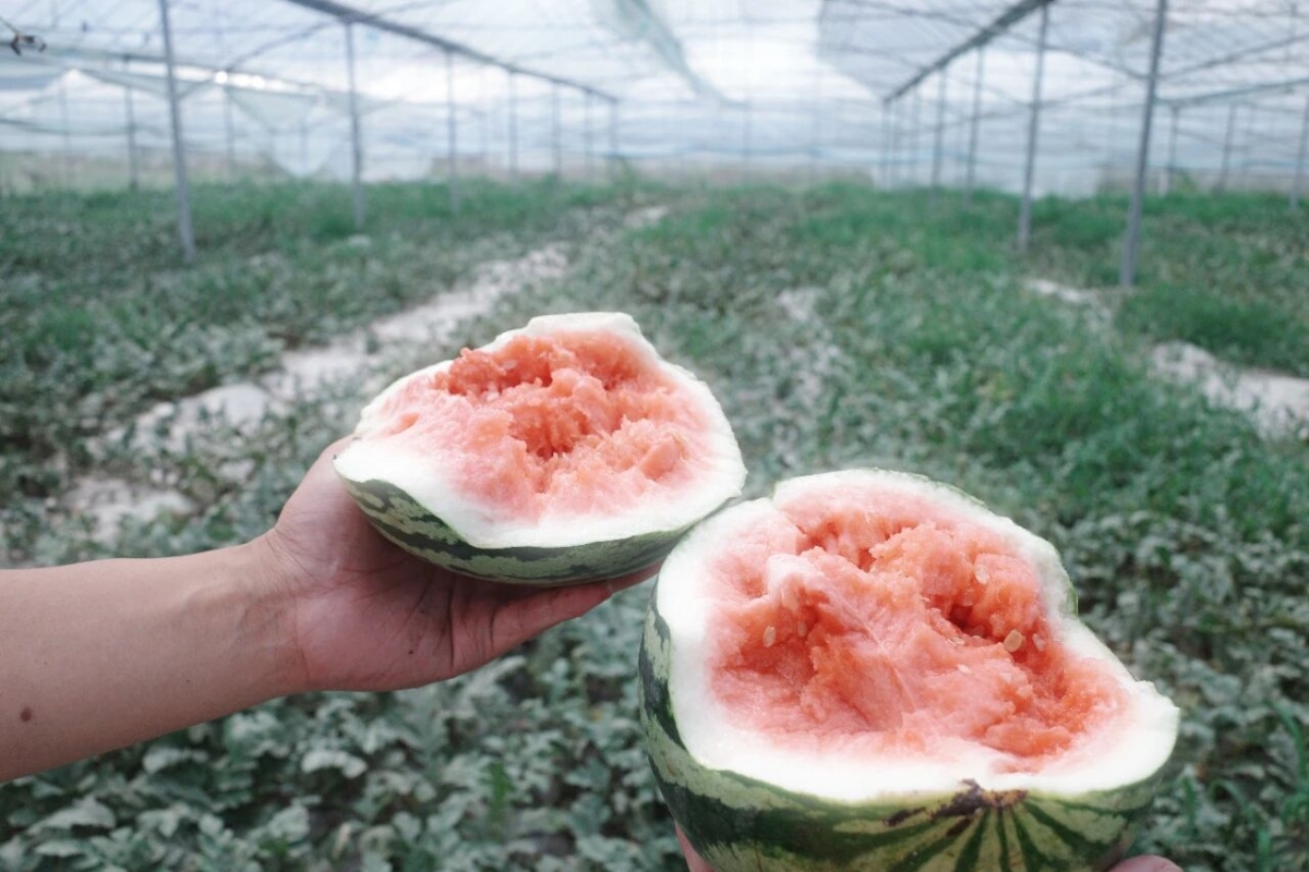 “這片地土壤是沙質、富硒的,特別利于西瓜生長。”倪陽峰說。