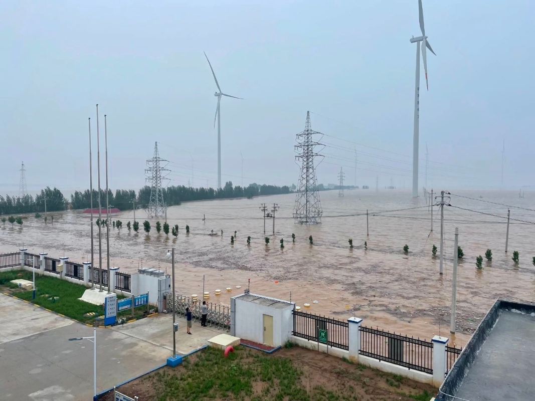 ▲ 2021年7月22日,鵬越風(fēng)電場升壓站被洪水圍困